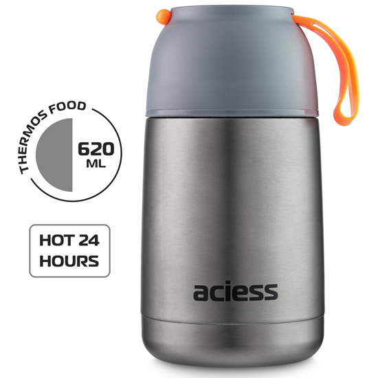 The 620ml Vienna food thermos from Aciess, made of premium stainless steel, is ideal for storing hot meals or cold snacks. This thermos is designed for those who want to enjoy fresh and tasty food outside the home, whether at the office, studying or travelling.
